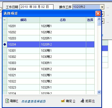 其上“有时候”就是指:双击“操作工序”弹出“选择项目”由于项目过多,