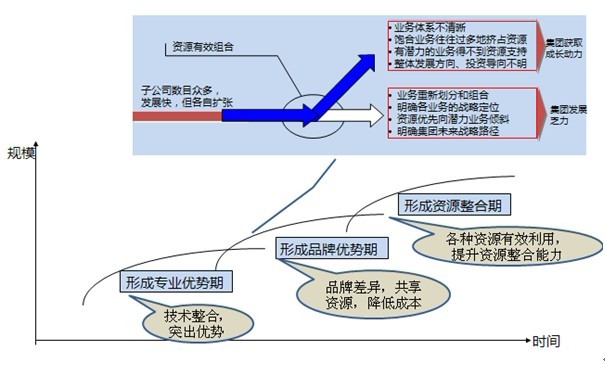 就目前状况而言,华恒智信顾问初步分析:对于公司各个部门,总部(总经理及职能团队)目前扮演着“财务控制型”总部的角色,从而丧失了发挥巨大协同效应的机会。解决这一问题,要提升资源整合能力,建设沟通机制,实现内外资源整合与联合重组,使协同效应产生利润源。