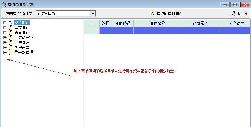 所以,我建议在操作员设置--操作员业务限制中,把产品目录也作为一个选择菜单。