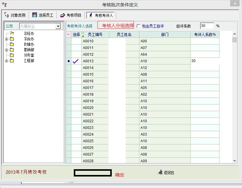 受予人力资源管理的权限后,这里没有确定选项,考评人员太多,建议分组或分类选择,
