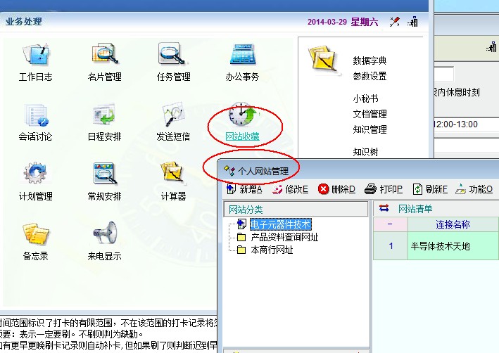 系统中原有的网站收藏中收藏的网站中可以供本人使用,但有些常用的网站全公司的员工都需要用到,