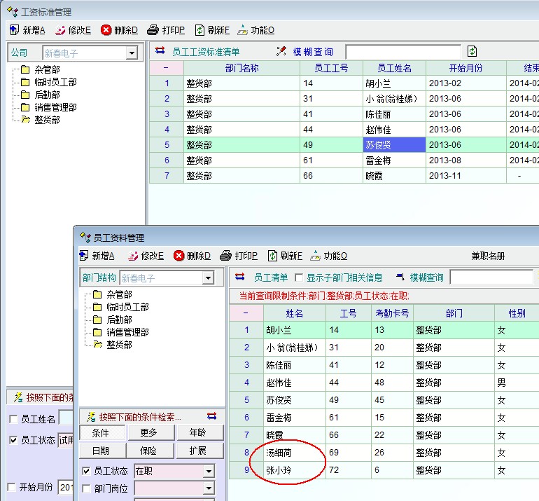 没有工资标准是不错,但没有工资标准最好也把员工资料显示出来,没有设置工资标准的员工在工资标准