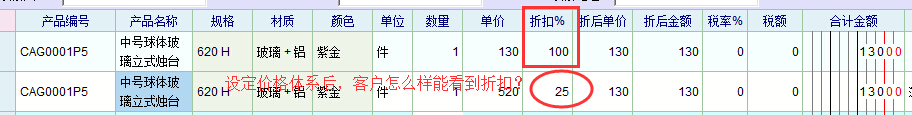 设定价格体系后,怎么让客户在折扣栏看到折扣?