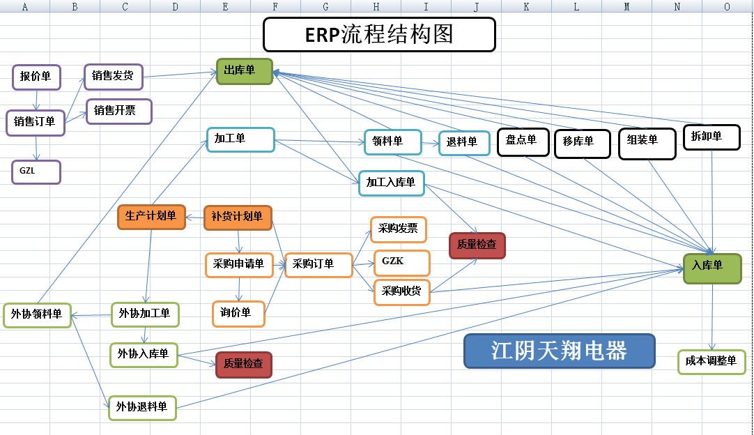 下面是我看到其他某软件提供的单据业务流程图。我不是给别人做广告,所以没有软件名。