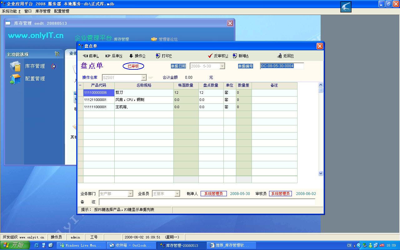 刚刚测试了一下,新更新的库存管理软件,盘点单功能增加了自动导入仓 库数据功能,真谢谢各位编程者.