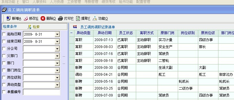 自2009/8/26升级后,员工调动的功能不如以前了。