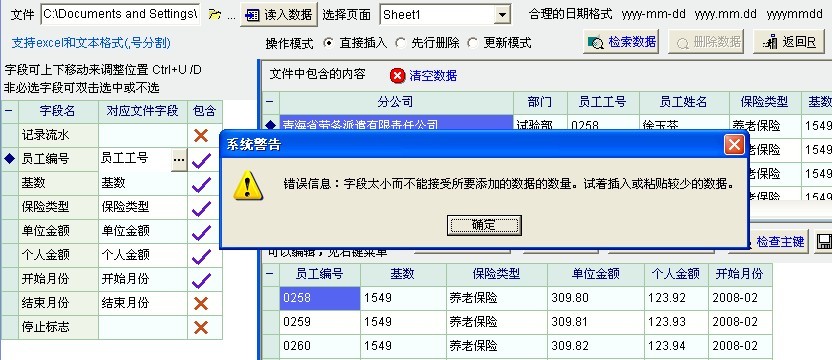 员工资料界面中,设置全部字段显示,导出保存,然后原封不动导入,不行!怎么?字段名称不一样!