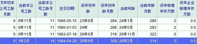 而我们只按照公司的工龄来计算享受的年休假天数,也就是说,我们只看在本企业的工龄和按照本企业工龄计算出来的符合企业标准的年假天数。