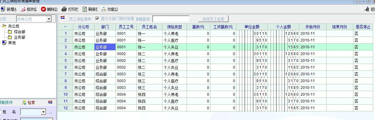 第二:保险标准中 每个保险类型都需要手动设置。而现实生产中,社保一般包括 养老 医疗 生育 工伤  失业