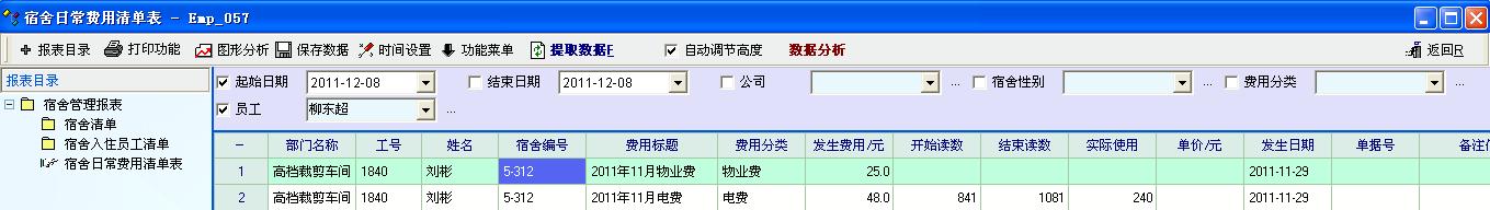 各部门宿舍费用汇总要和工资单中的宿舍费用科目汇总核对要一致,现在要分部门汇总宿舍费用不方便,能否宿舍费用清单检索条件中增加部门、父部门、员工集合这几项?