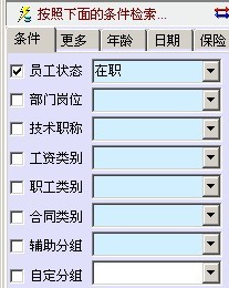 员工资料打开后,左下方有个检索,里面没有我需要的检索条目,想通过“自定义分组”来检索,打上勾后,下拉列表是空的,或者说我希望通过“岗位级别”来检索,应该怎么做?