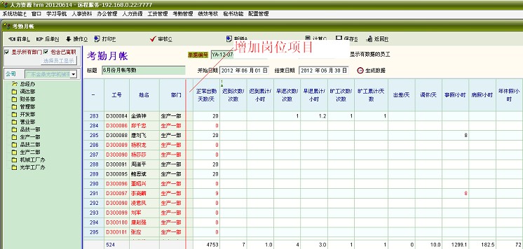 原创_如何给考勤日帐和月帐中增加岗位项目_人力资产