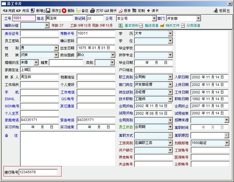 1.使用“扩展属性”(员工资料自定义属性,最多可定义8个,比如:扩展1)再定义一个银行卡号(奖金建行)