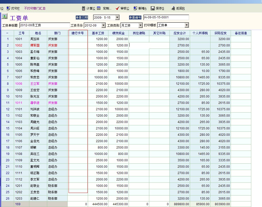 系统默认只带了一个银行账号。 这样做好奖金单 需要拷盘给 建行的时候 就能直接复制到excel表中了!