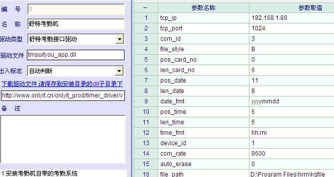 舒特考勤机下载完毕文件D:\Program Files\hrm\dll\kqrec.txt