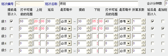 AB的段2设置上班为 17:40。