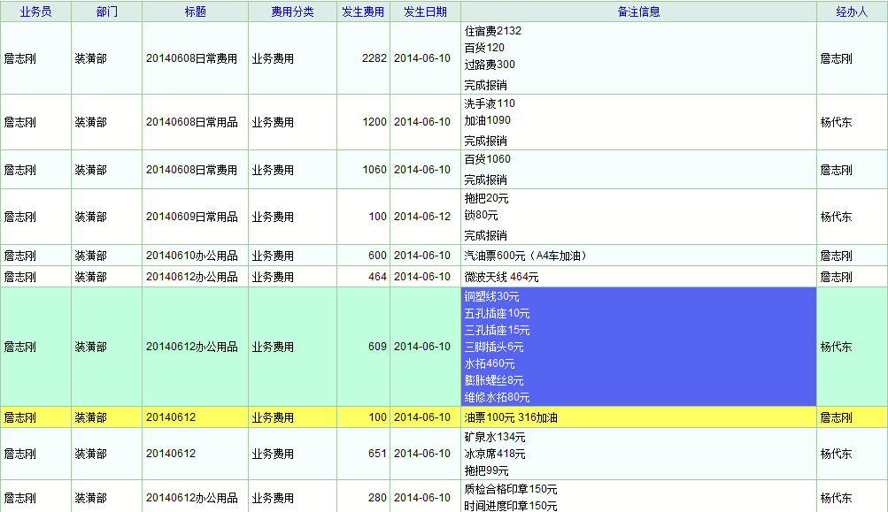 在日常费用模块里面是否能够增加一个明细列表,同时增加一个合计呢?还有一个能否增加一个部门明细?因为有些费用是其它部门发生的。