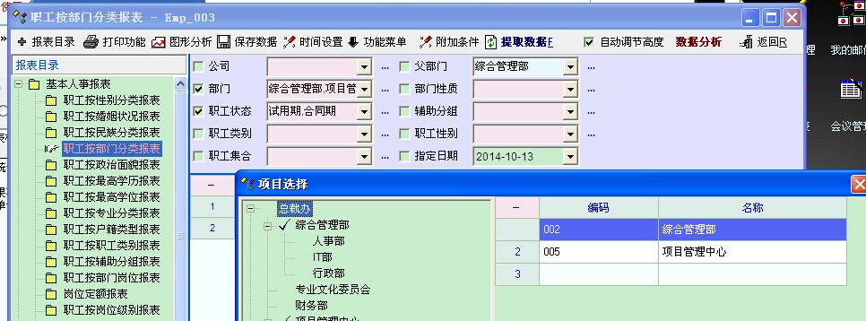 问题二:如果在部门这栏里面直接勾选父部门,不勾选子部门那么子部门人员信息是不会跳出,希望可以人事资料一样有个子菜单勾选.