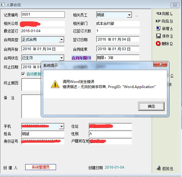 关于套打人事合同,无法调用word的问题求助