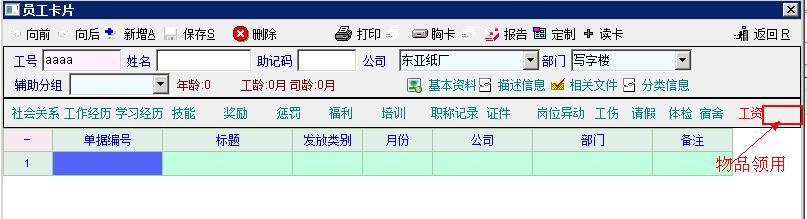 1、建议人力资源系统里的员工卡片---分类信息里把“物品管理”添加进去,或者说是“物品管理”关联到员工卡片的分类信息里。