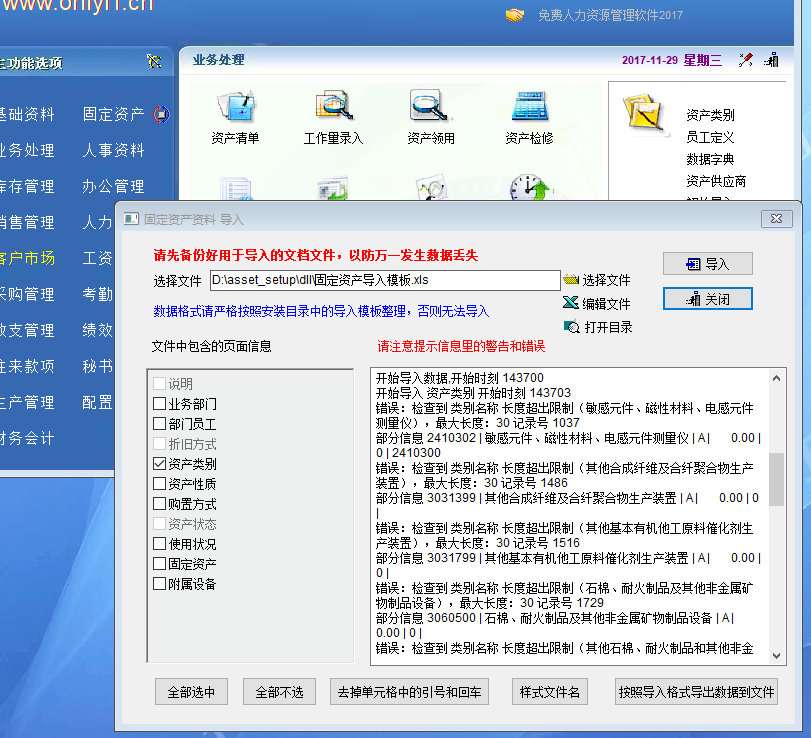 既然资产类别可以批量导入,但是资产类别名称却有30字符的限制,导致我在导入国家固定资产分类代码名称的时候,出现类别名称超过30字符,需要修改无法导入的问题,希望能够把字符限制取消或者增加。