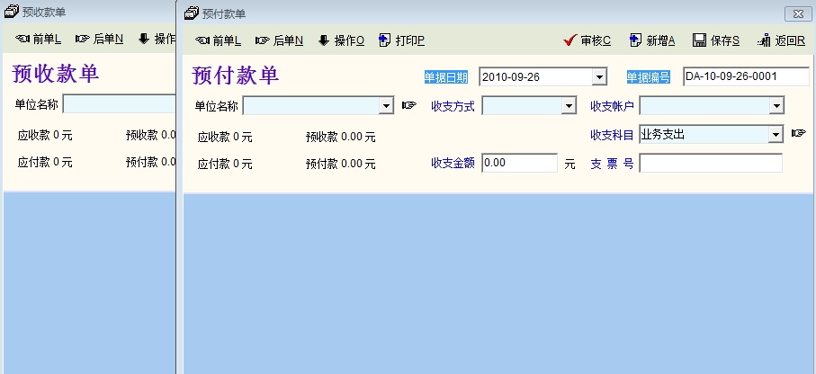 不知道什么时候预收款单和预付款单只看到表头,内容变成一片蓝色,无法显示内容。请问一下是什么问题?该如何修复?