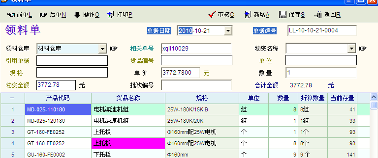 各位前辈,希望在单据上增加多主物资功能。默认如现在之状态。如果需要再加一个主物资可以增加一个命令按键:下一主物资,这样有多少主物资可点多少次。点一下。将主物资的相关信息增加一编。