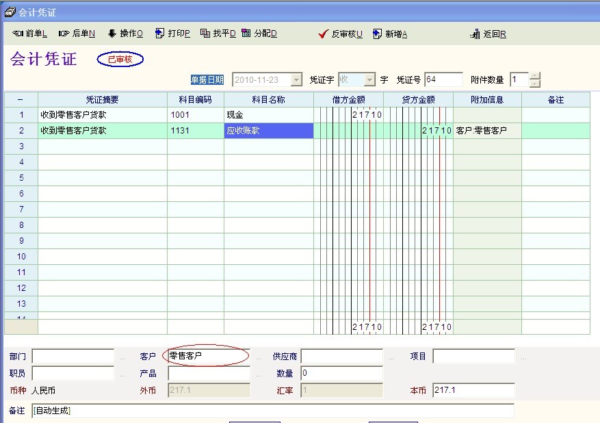 1、强烈建议系统中的会计凭证在保证后,将借方科目在最前行显示,而贷方科目在所有借方科目的下面行显示和打印 2、建议在会计凭证中的凭证摘要中支持调用功能,列图说明 设置凭证摘要为“收到[客户]货款”,此时的中括号中的客户会自动读取图2中所圈红部份的值,以简化凭证摘要的书写。。。