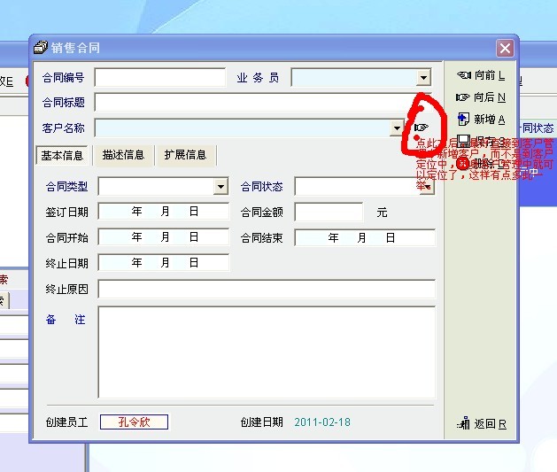 2.再说一下,这不是个人操作习惯的问题,而是工作实践过程中验证的了。有些地方(新增合同客户名称时)确实麻烦,应该化繁为简,能一步到位,为什么要绕圈子呢。