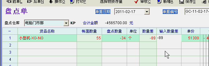每个月盘点盘盈亏时,在盘点单上都要输入盘点数量才知盈亏,请问能不能在数量差里输入,+5就是盘盈,-5就是盘亏.