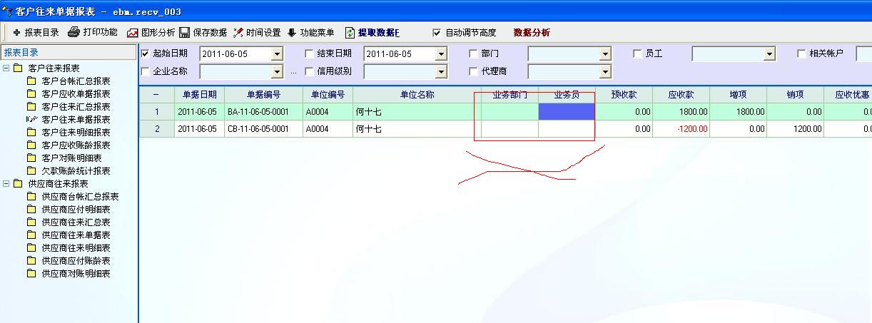 这里的业务部门和业务员是客户资料里面定义的。