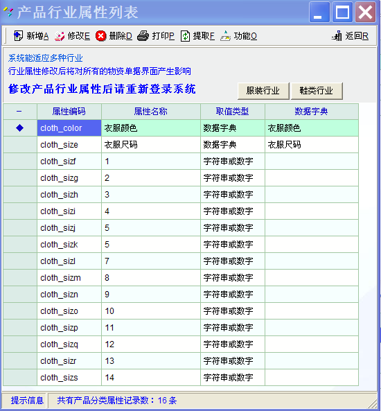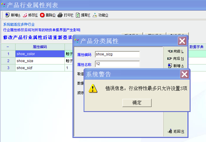 0816版升级后,产品行业属性列表的产品分类属性---行业特性最多只允许设置三项太少,能否恢复到0716版。因为尺码有时多达20项,如28、28.5、、、、、、43、43.5、44、44.5等