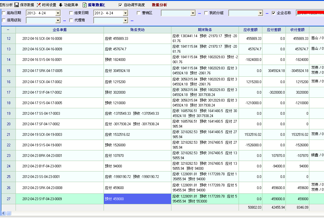 3、往来报表里,只有这一处是可以按单据部门区分的,别的都不可以 不知道是不是也可以开通一下,因为是把三个公司按三个部门来定义的,钱是算的统帐,所以只能按不同部门来搜索,才能再把钱分来开算的,谢谢啊 |