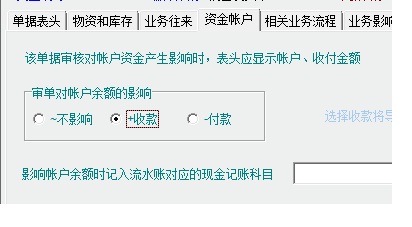 单据属性的资金帐户栏目里审核对账户余额的影响设置为收款即可。