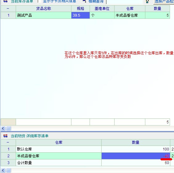 操作成功,该仓库的库存为负数