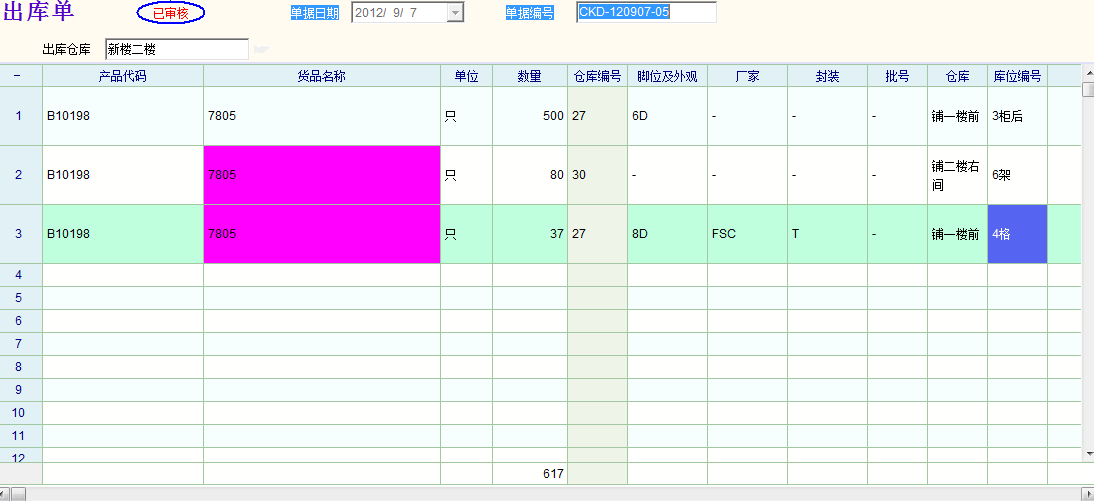 如图片所示,这三个产品的出库仓库该算哪个呢?新楼二楼?铺一楼前,铺二楼右间,铺一楼前 |