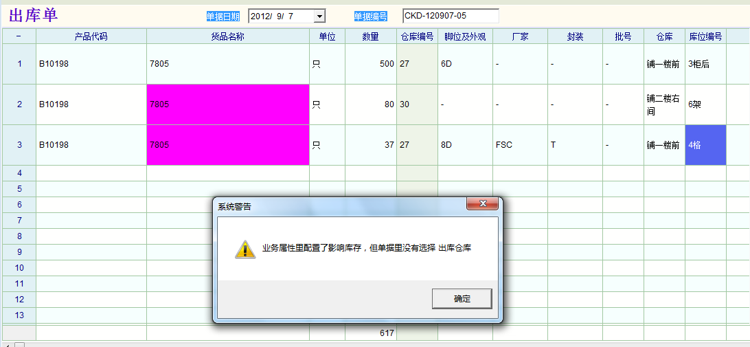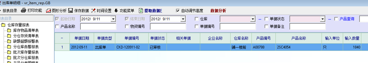 上图是出库单,表头出库仓库是铺一楼前,细目仓库(实际出库仓库)是铺一楼后。 下图是库存报表中出库单明细的检索,显示的出库仓库是铺一楼前,这很让人无所适从。 |