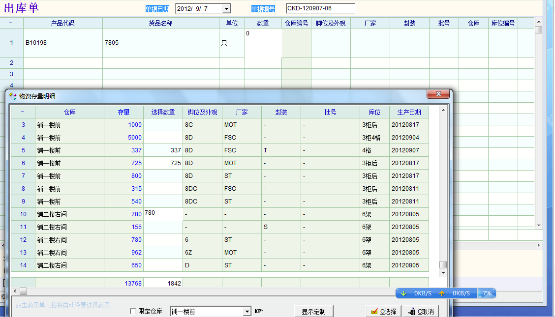 哇,老师的响应速度真快,没得说,就几天功夫已经把细目仓库选择问题解决了,赞一个! 还请老师把库位转移的问题也解决一下。 |