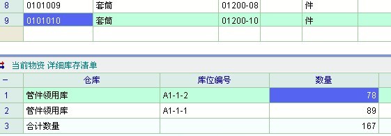 图片1:0101010编号的套筒,库位A1-1-2数量78个,库位A1-1-1数量89个