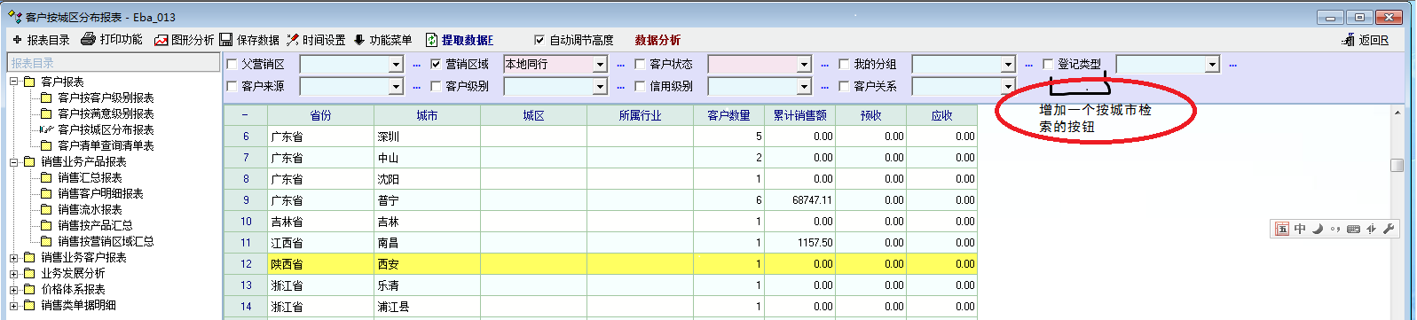 请问老师如果我要是想统计一个城市或是一个省份或是一个地域的销售资料,统计资料,该如何操作?是不是应该增加一个按地域(省份、城市等)作为检索条件的定义。