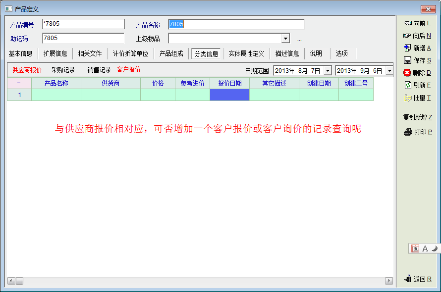 产品定义中可否增加一个客户报价记录的查询呢