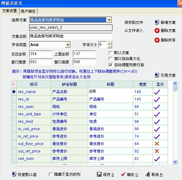 第二图是以用户名进入后,产品资料列表的列定义中的显示方案,与用户绑定不符