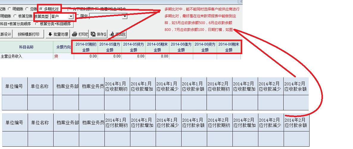 老师们辛苦了,在实际工作中,我们老总需要一个这样的表,即应收款及应付款(财务模块中通过项目核算,没通过明细科目核算)需要进行多期比对及对各个月的未收及未付余额列出来,方便他们查看了解,如图所示 ,老师们能否帮忙解决为盼!!!