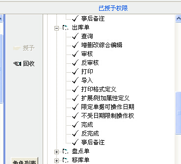 仓库操作员出库单已授予权限