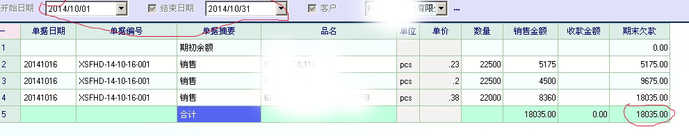 为什么同一个客户选取不同时间段期末欠款合计不一样. |