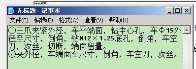 ①三爪夹紧外径,车平端面,钻中心孔,车Φ15外径至尺寸,倒角,钻M12×1.25底孔,倒角,车空刀,攻丝。切断,端面留量。