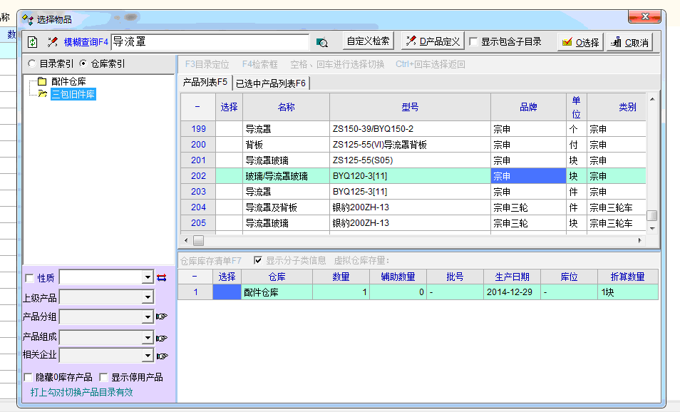楼主所说的,应该是指选择仓库检索时,模糊搜索,针对的是现有库存的产品进行模糊匹配。