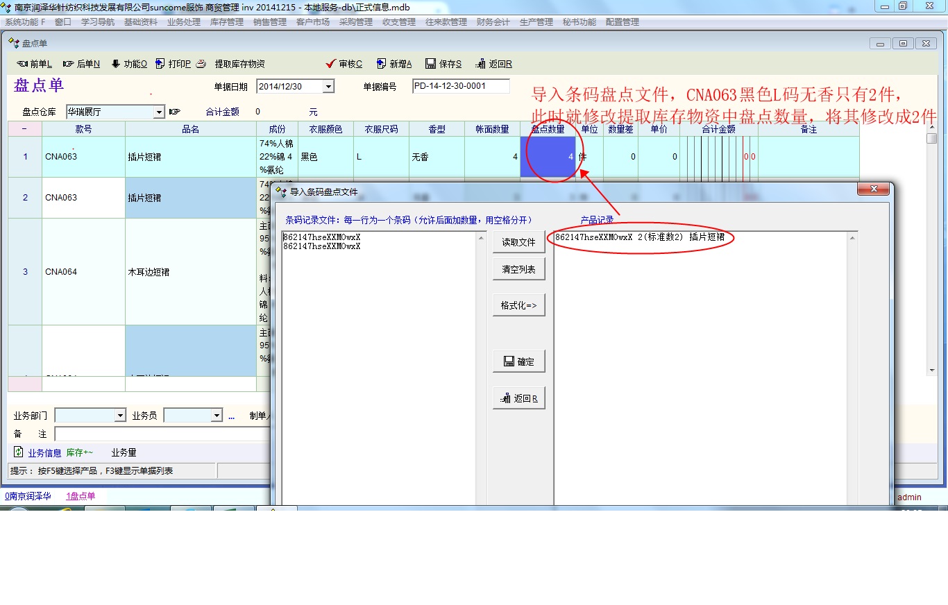 再用条码文件导入试试,自动算出差数,把数据文件导出成EXCEL,再导入到盘点单中。