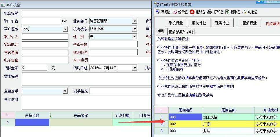 3、在在客户机会中物资明细添加产品行业属性明细。我们的物资明细中,产品行业属性明细是必不可少的