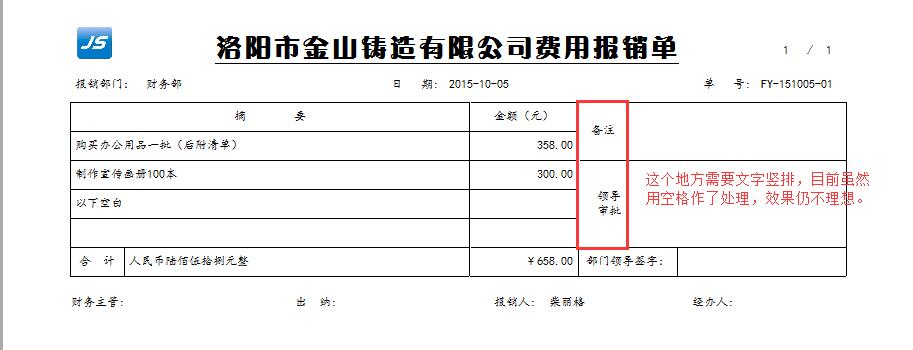 目前系统的打印模板,没有“文字竖排”功能,在一些需要文字竖排的地方效果很不理想,因此,希望能够增加该功能。有时候虽然有空格作了处理,但是与实际效果相去甚远。